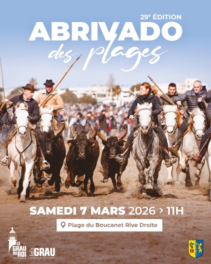 Le samedi 7 mars 2026 à 11h, c’est la 29ème Abrivado des plages ! C’est LE moment où la saison taurine démarre vraiment au Grau du Roi. Imaginez dix manades qui galopent sur le sable, de la plage du Boucanet jusqu’à la Plagette (Villa Parry)… C’est beau, c’est gratuit, et ça sent bon les embruns et la fête. Que vous soyez du coin ou juste de passage, venez prendre une bonne dose de culture camarguaise avec nous !